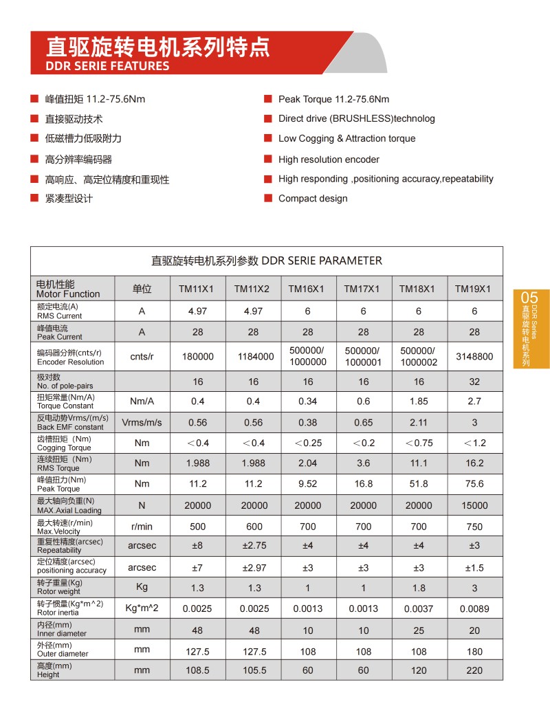 | 直驅(qū)旋轉(zhuǎn)電機(jī)系列參數(shù)DDR SERIE PARAMETER | |||||||