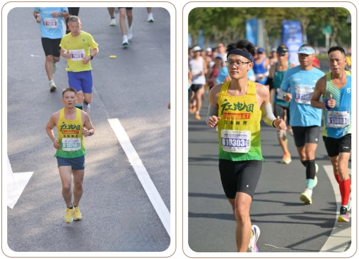 在比賽當(dāng)天,廣工大的隊(duì)員們穿著統(tǒng)一的日東科技定制運(yùn)動(dòng)服,在陽(yáng)光明媚的早晨出發(fā)。他們用腳步丈量城市的每一寸土地,呼吸著清新的空氣,享受運(yùn)動(dòng)帶來(lái)的快樂(lè)!沿途觀(guān)眾的熱情加油聲此起彼伏,為選手們注入了源源不斷的動(dòng)力。最終,廣工大所有隊(duì)員都成功完成了全程的比賽,以實(shí)際行動(dòng)詮釋了什么叫堅(jiān)持到底,其中,黃文龍選手以2:45:53的凈成績(jī)跑完全程,在17195名參賽者中獲得了排名101的好成績(jī)!