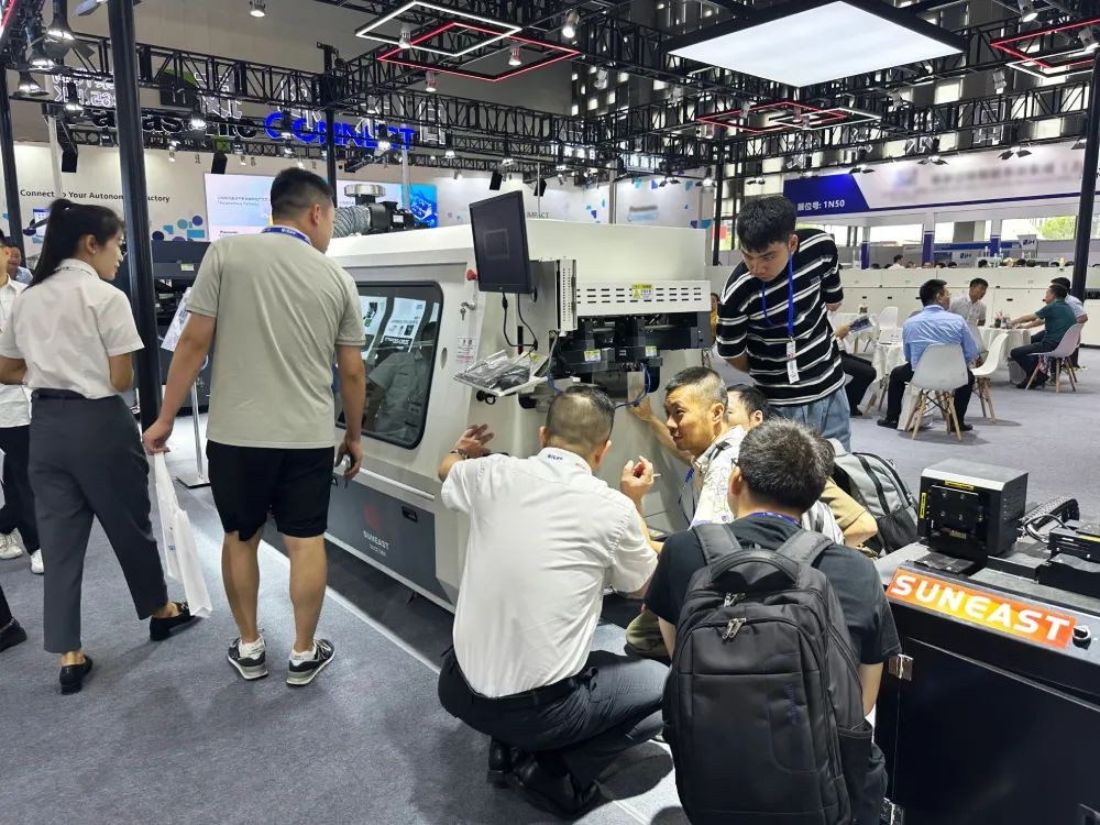 日東IC貼合機在展會精心打造的“SiP 及先進封裝生產示范展示線”上精彩亮相,設備以高精度、高效率、高穩定性的特點吸引了觀眾駐足觀看、了解。