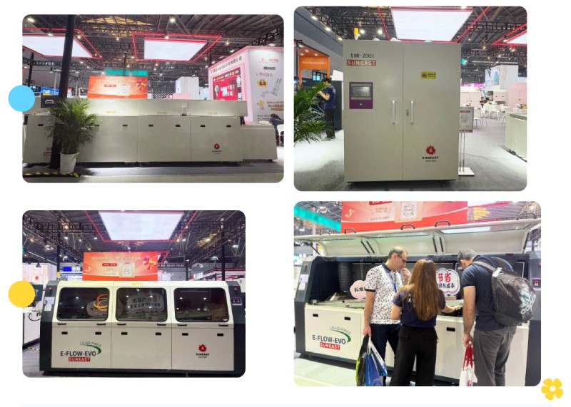 本次展會日東科技展出了多款設備,憑借全球首創的焊接區密封設計與分段傳輸方案,徹底解決了傳統隧道式波峰焊的卡板、維護難題,顯著提升焊接品質與設備性能,成為展會焦點。同時展出的雙泵選擇性波峰焊、回流焊/波峰焊--EVO/氮氣波峰焊及垂直固化爐等經典設備,也吸引了眾多新老客戶駐足交流。