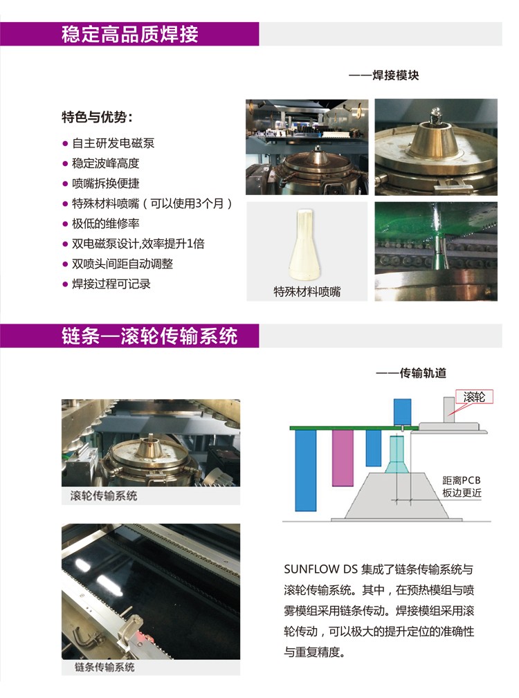 2.精確設置過的助焊劑噴涂,只施用于焊盤和插腳上,可以確保PCB板的高潔凈度,無須另外清潔。