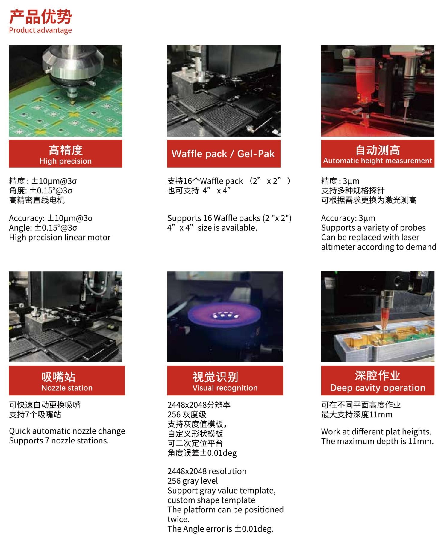 多芯片處理能力高,支持16種不同型號的芯片貼裝;